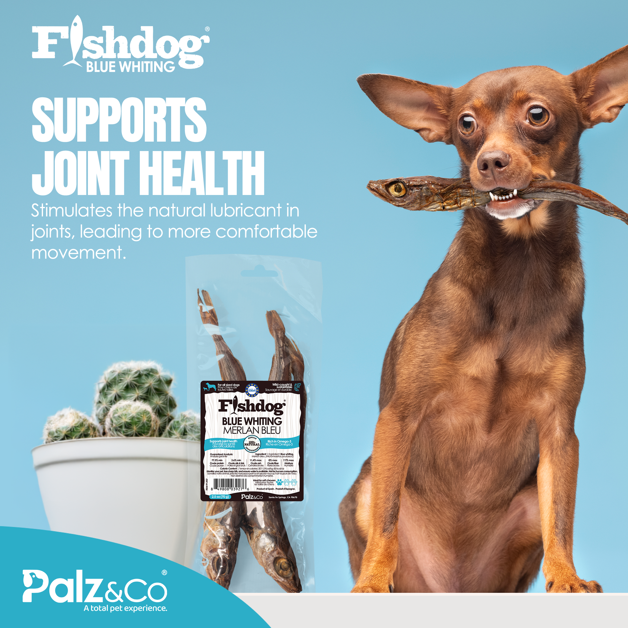 Treat your dog to a clean, crunchy snack they’ll go wild for with Fishdog Blue Whiting Dog Treats by Palz&Co.