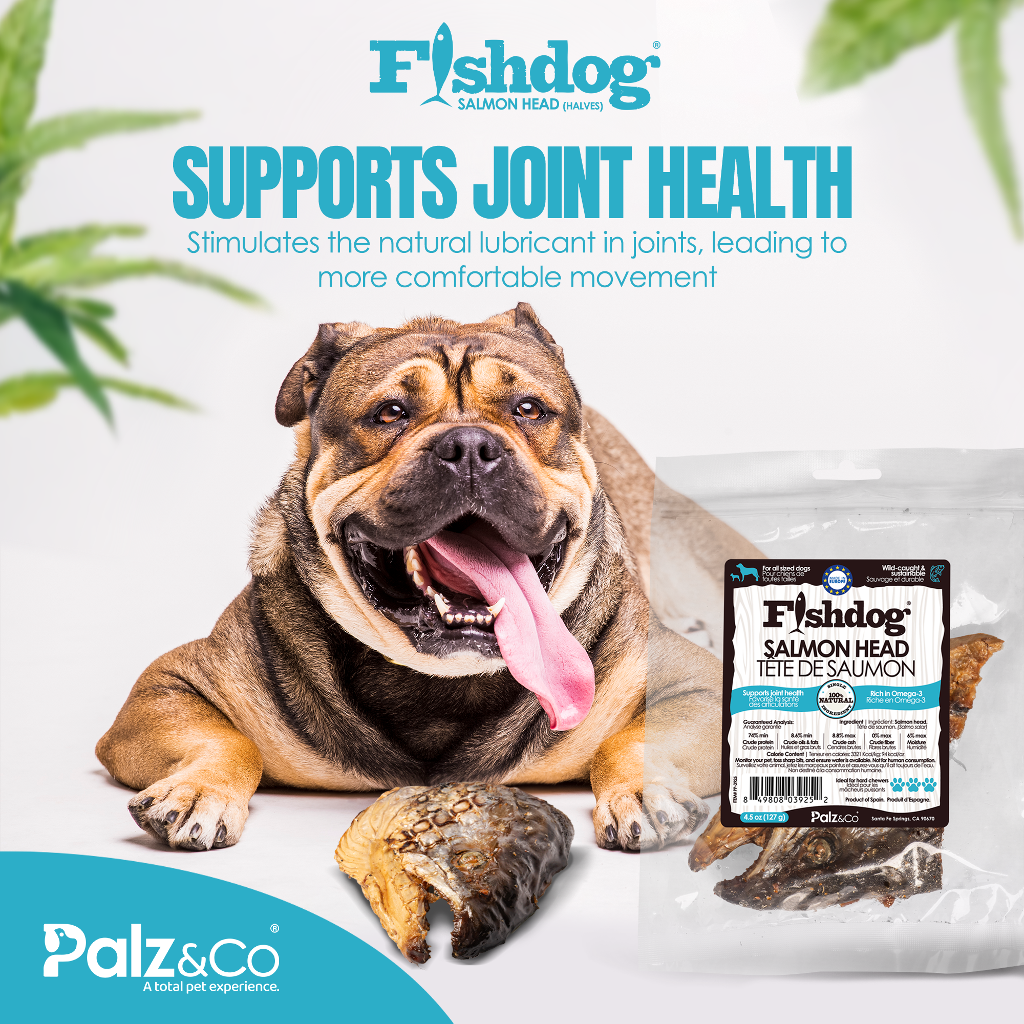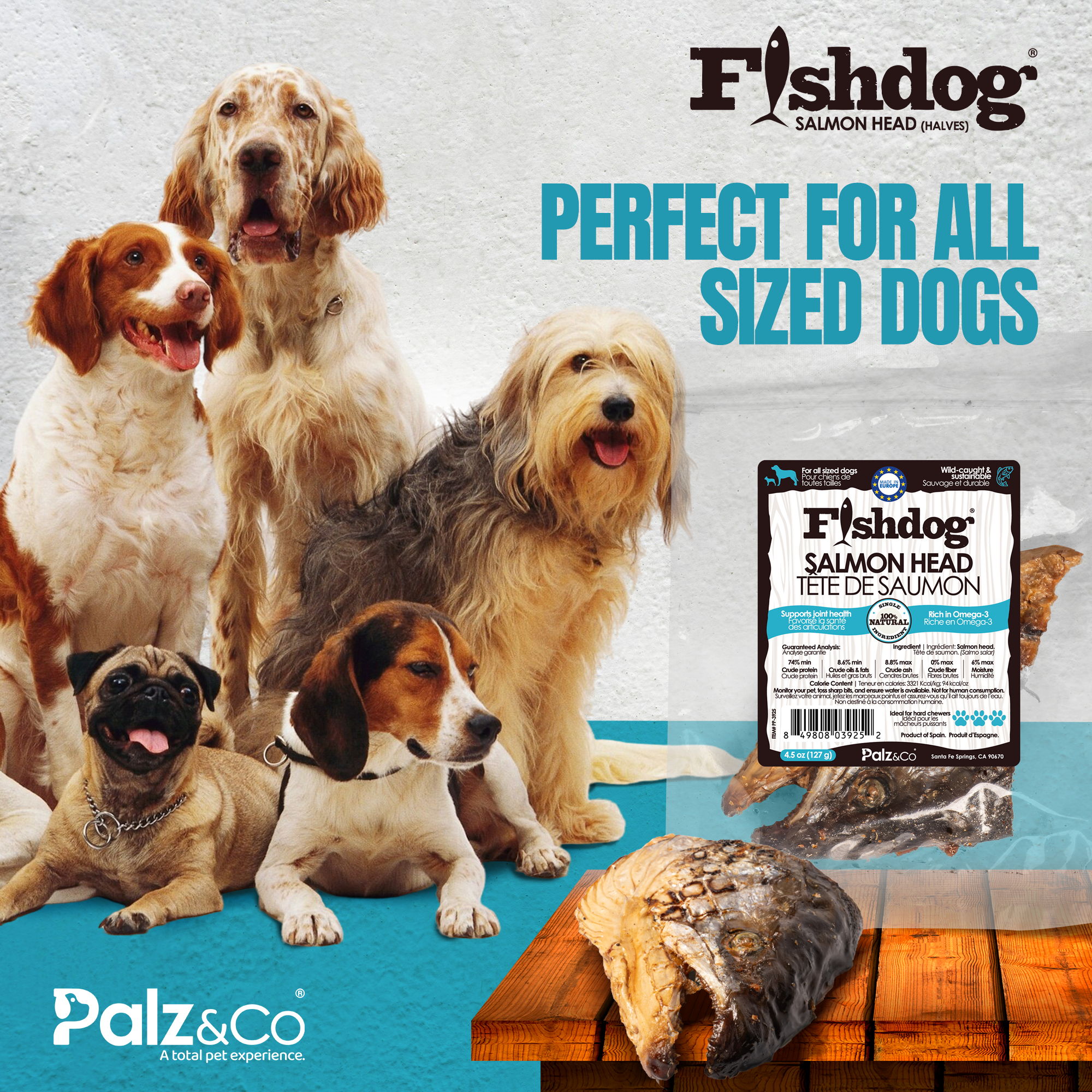 Treat your dog to a powerful source of natural nutrition with Fishdog Salmon Head Dog Treats by Palz&Co.